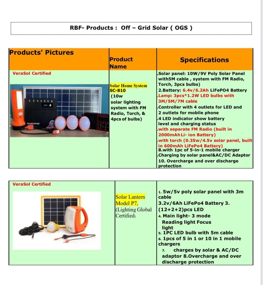 RBF project of Suppy of Off-Grid Solar Home systems and Solar lanterns to Village house holds at a Subsidy base.